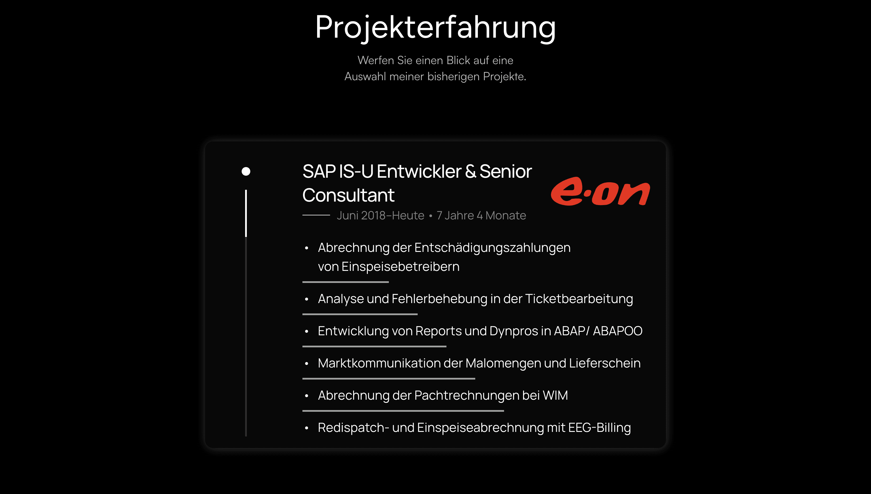 ISU4U ist das persönliche Portfolio eines erfahrenen SAP-IS-U Beraters und Entwicklers in der Energieversorgungsbranche. Die Website präsentiert Expertise in Beratung und Entwicklung im SAP-Umfeld – klar strukturiert, modern und auf den Punkt gebracht.