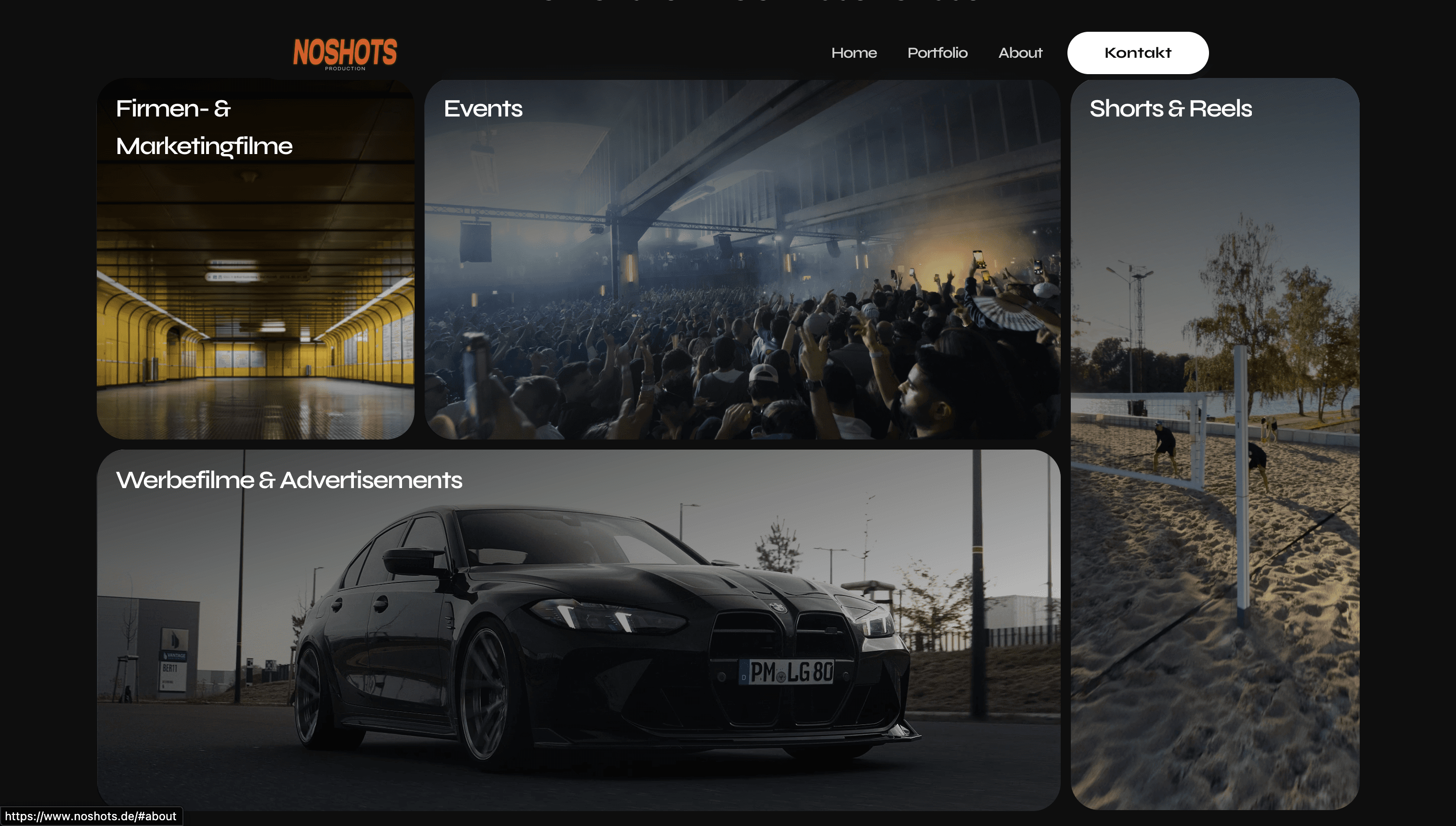 Für NoShots wurde eine moderne Website entwickelt, die das Unternehmen als kreative Videoproduktionsfirma für Commercials, Social Media Content und Event-Aftermovies positioniert. Ziel war es, Leistungen, Stil und Referenzen klar zu präsentieren und potenzielle Kunden gezielt anzusprechen.